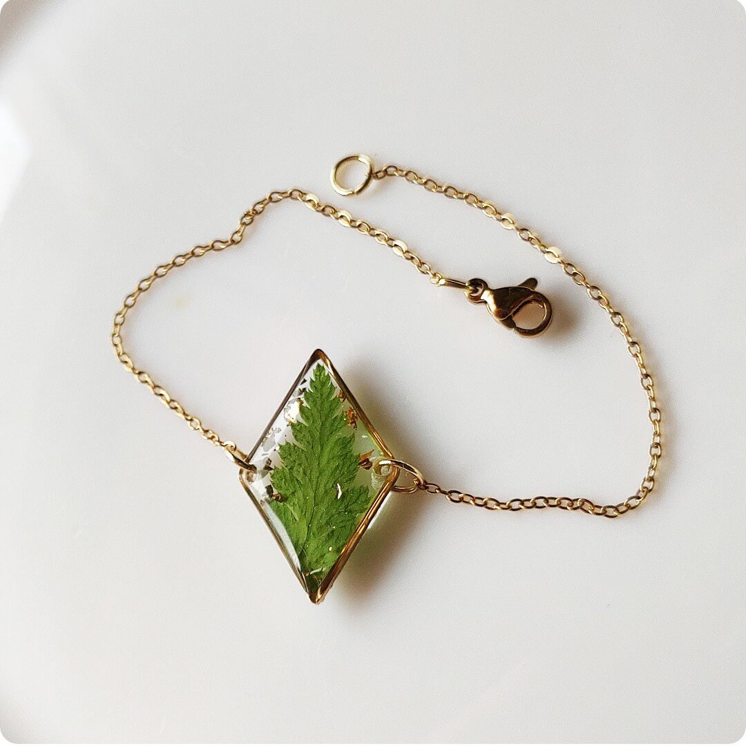 Bransoletka z paprocią i płatkami złota