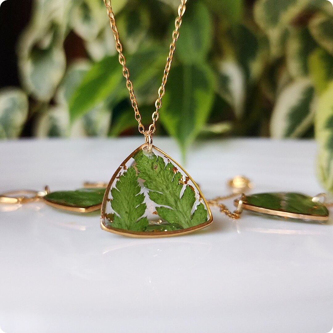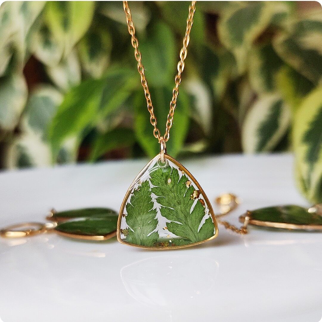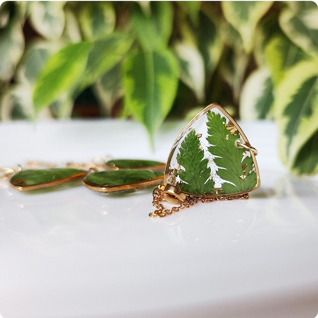 Żywica epoksydowa pozwala na utrwalenie kruchej i ulotnej cząstki natury. Jest krystaliczna i lekka. Stal szlachetna ma właściwości hipoalergiczne, nie odbarwia się i jest w dużym stopniu odporna na zarysowania. Przy odpowiedniej pielęgnacji biżuteria z tych materiałów jest gwarancją długiego użytkowania