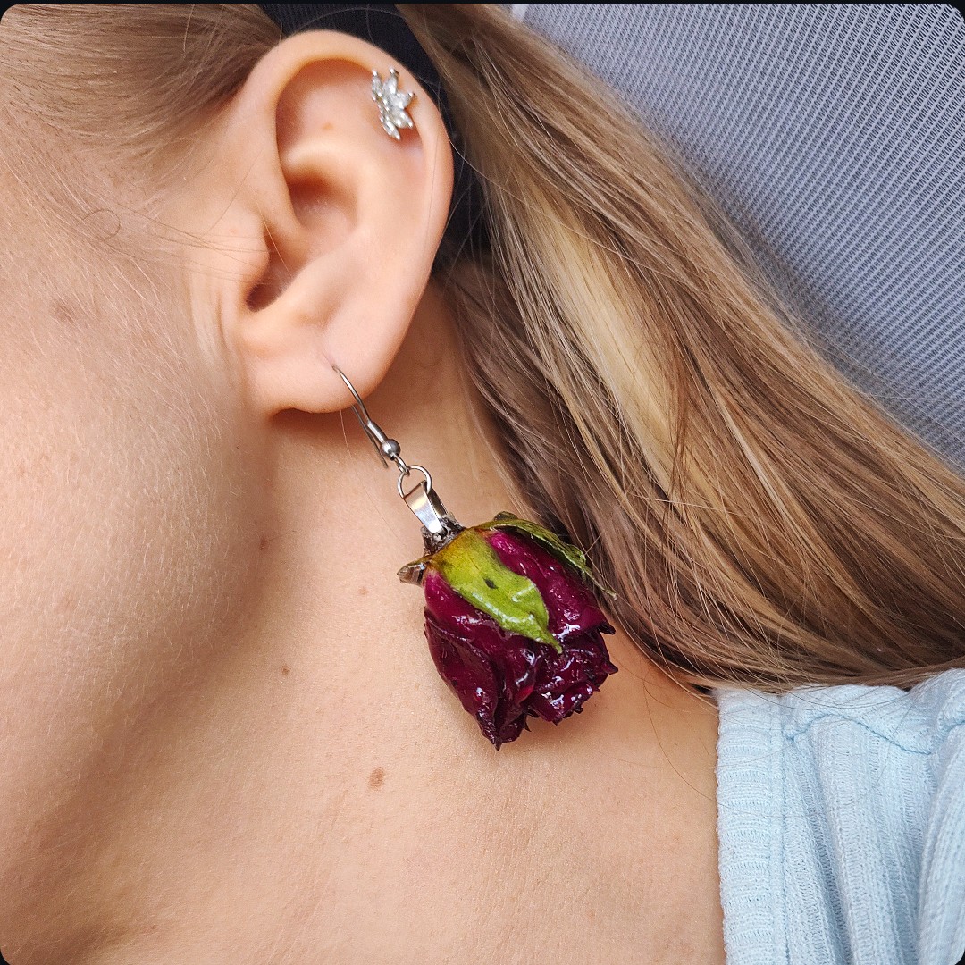 Kolczyki pąki róż. Biżuteria idealna dla kobiet lubiących kontakt z naturą i nietuzinkową biżuterię. Polecamy szczególnie dla tych z nas, które uwielbiają zadać szyku niewielkim elementem. Niewielkim rozmiarem, potężnym jednak w pierwszym wrażeniu!