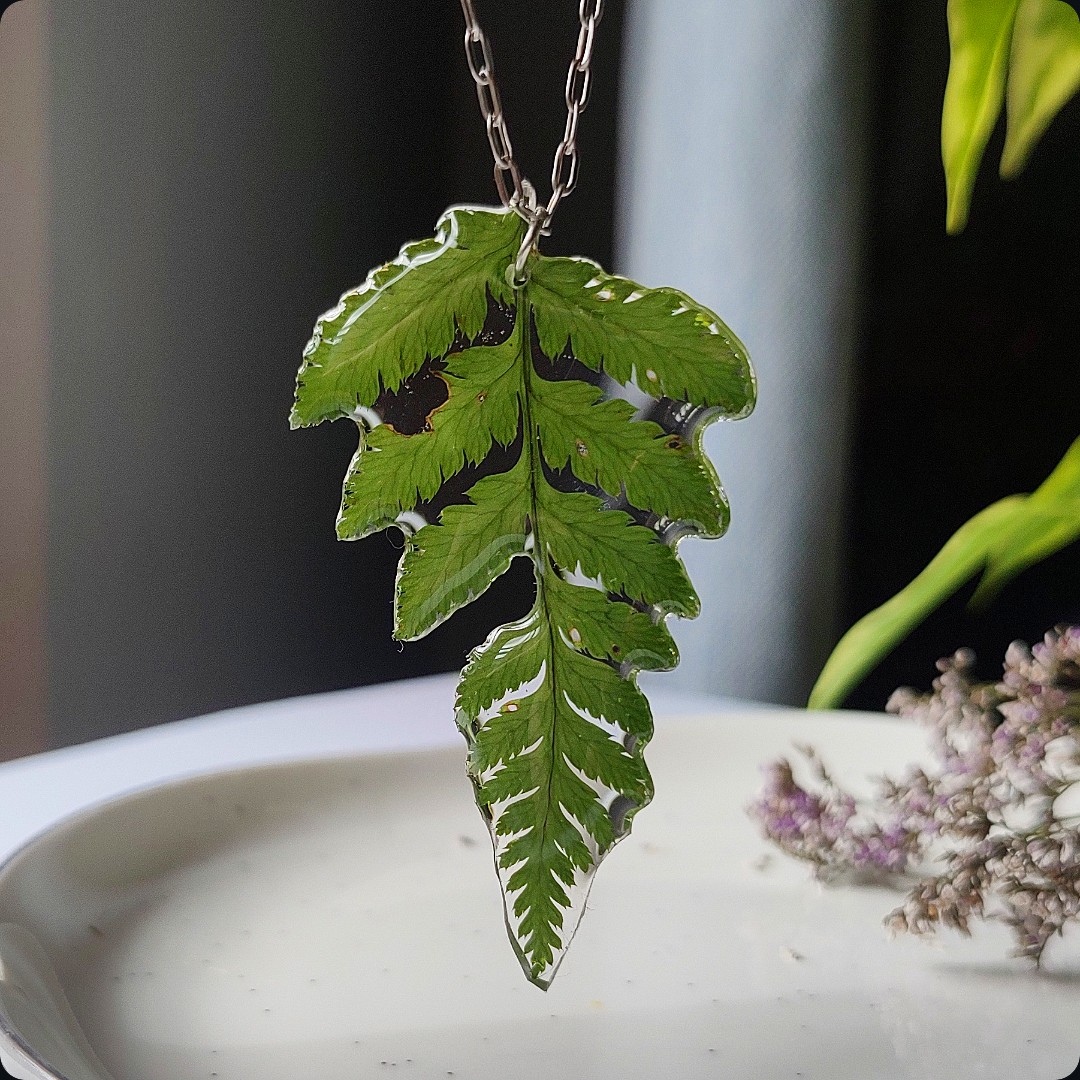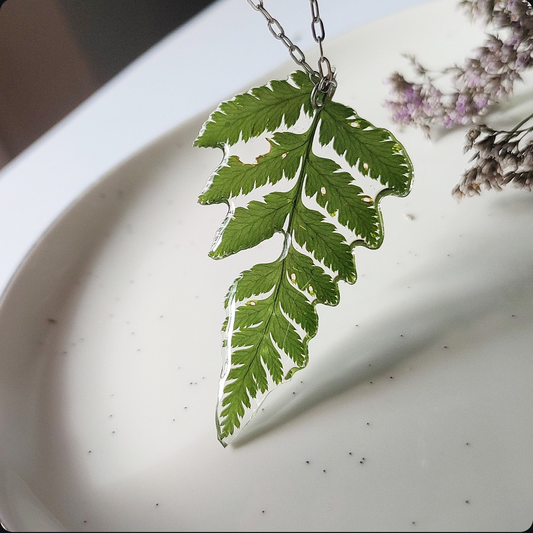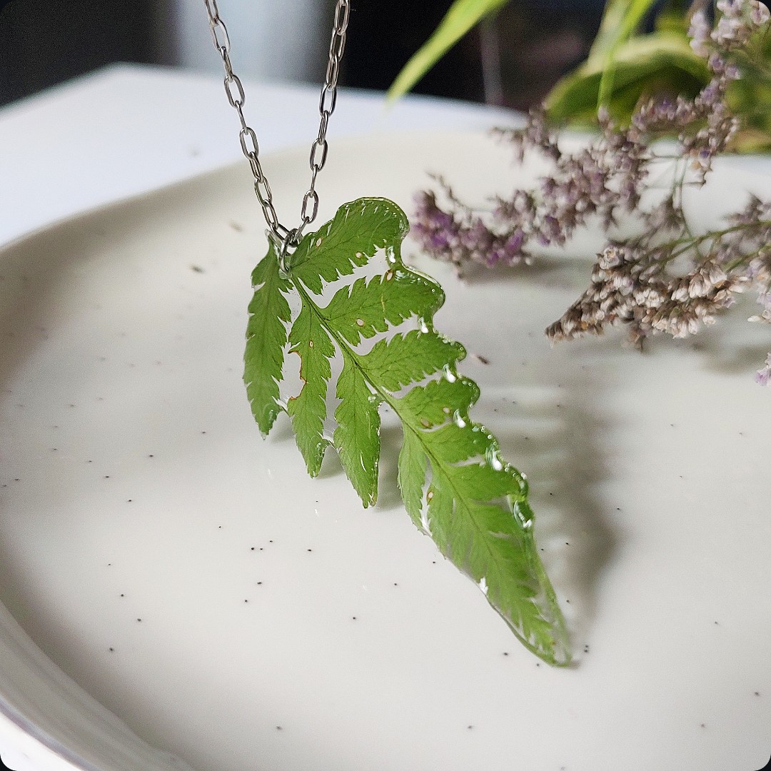 Naszyjnik paproć. Od wieków paproci przypisuje się magiczne znaczenie, jest symbolem dobrobytu, szczęścia i powodzenia. Biżuteria idealna dla kobiet kochających naturę i nietuzinkowy styl.