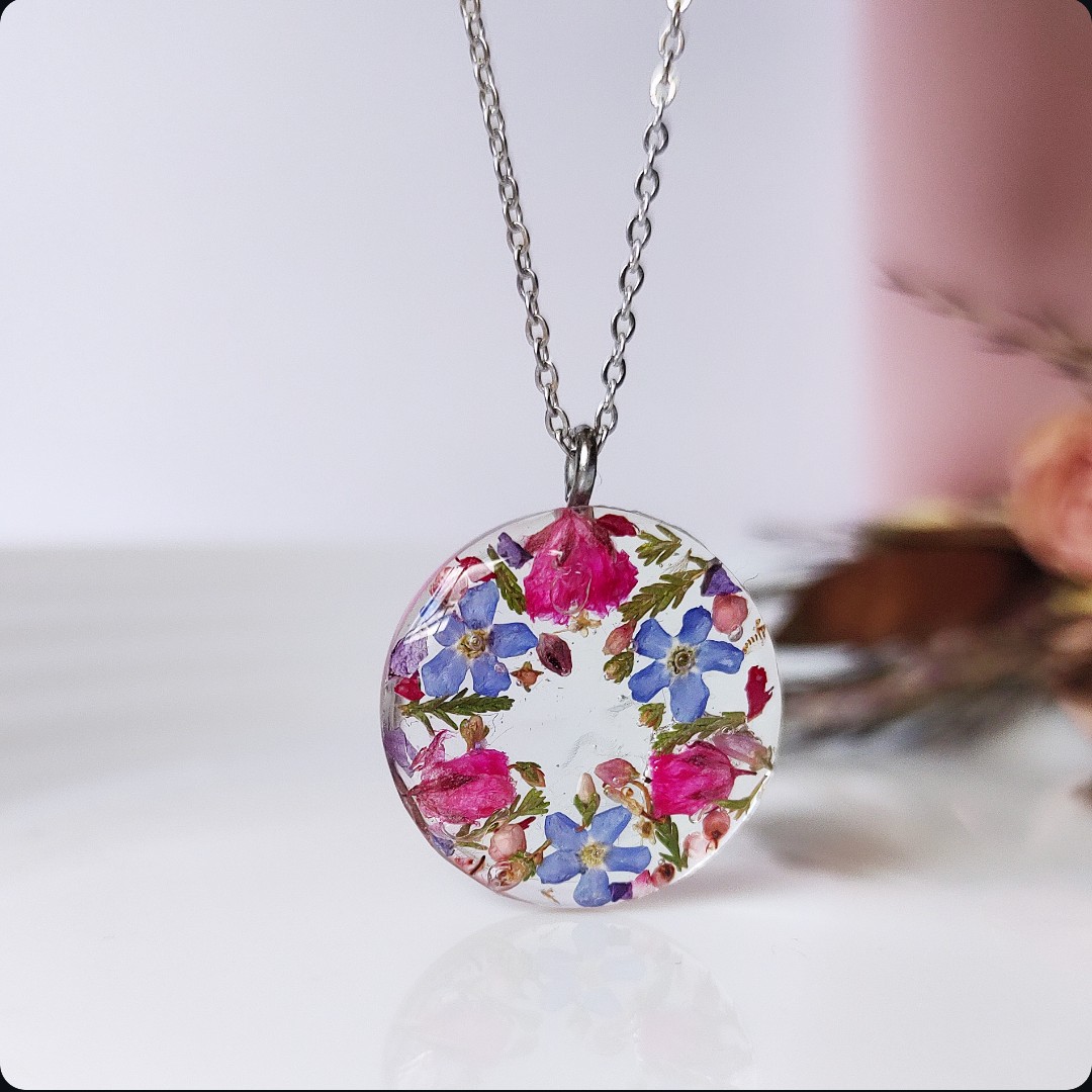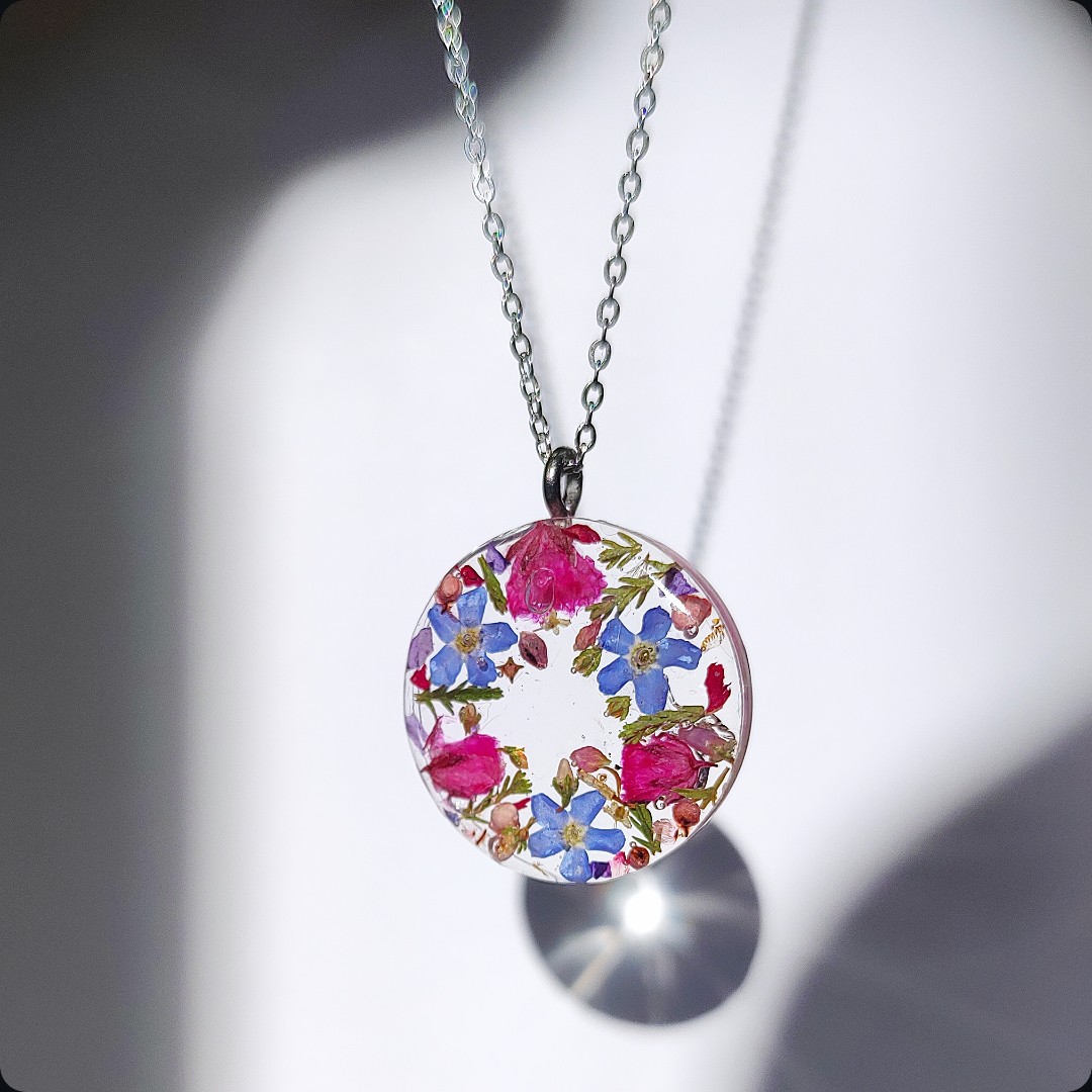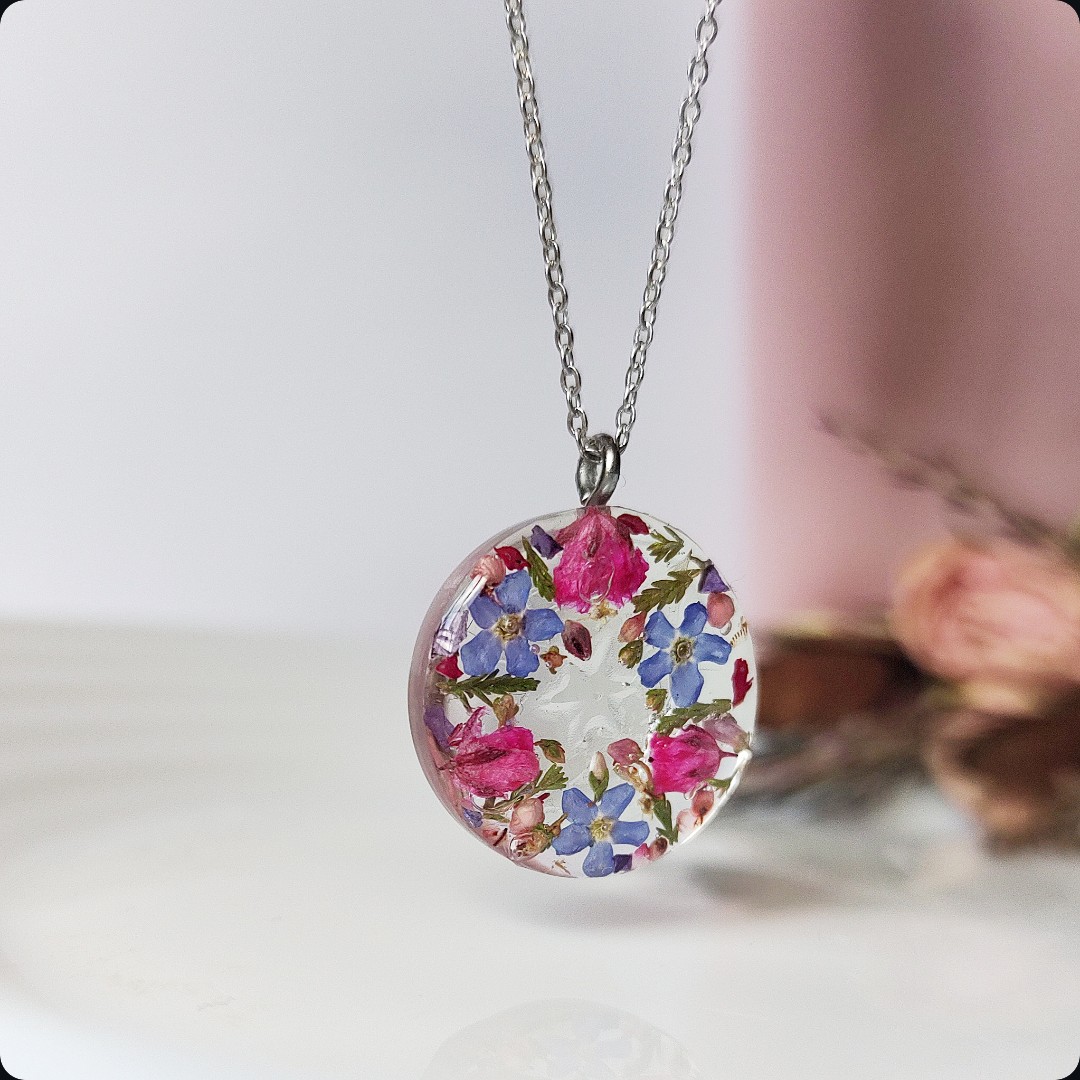 Żywica epoksydowa pozwala na utrwalenie kruchej i ulotnej cząstki natury. Jest krystaliczna i lekka. Stal szlachetna ma właściwości hipoalergiczne, nie odbarwia się i jest w dużym stopniu odporna na zarysowania. Przy odpowiedniej pielęgnacji biżuteria z tych materiałów jest gwarancją długiego użytkowania