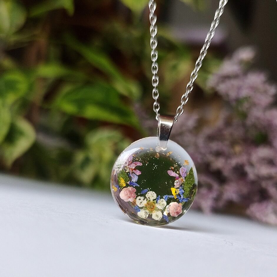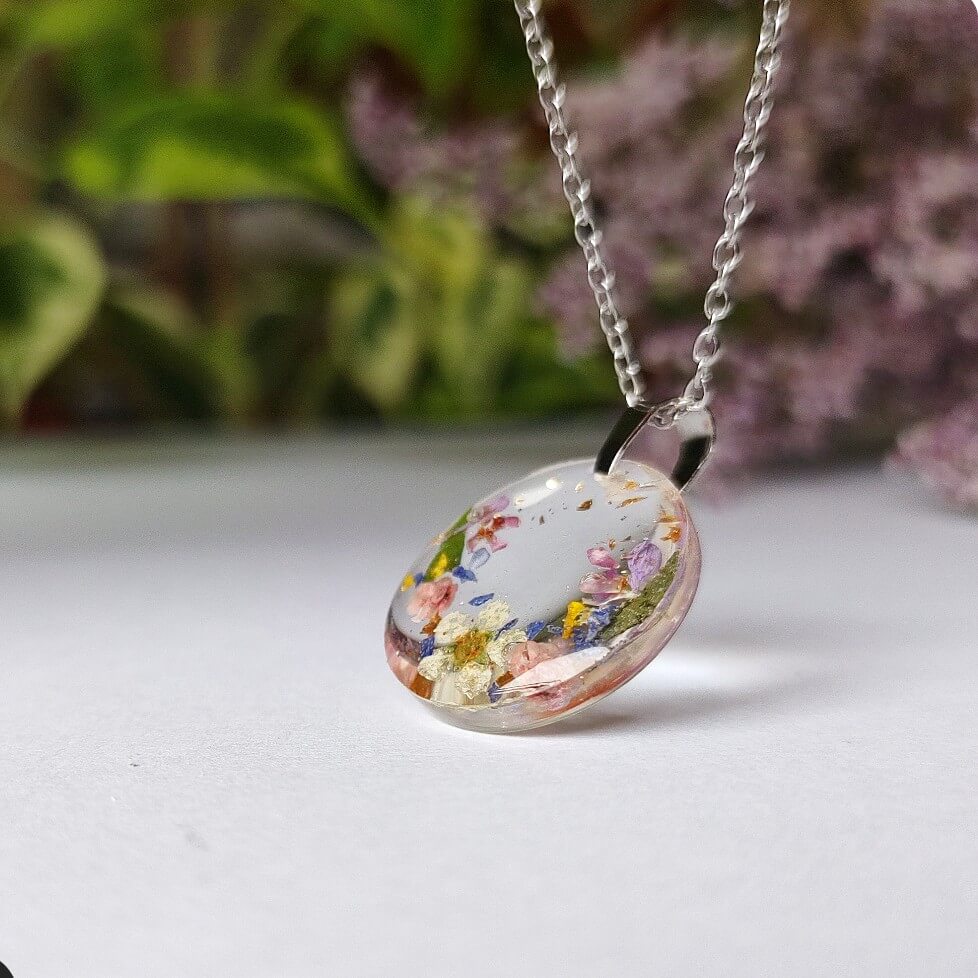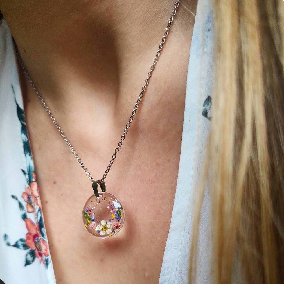 Żywica epoksydowa pozwala na utrwalenie kruchej i ulotnej cząstki natury. Jest krystaliczna i lekka. Stal szlachetna ma właściwości hipoalergiczne, nie odbarwia się i jest w dużym stopniu odporna na zarysowania. Przy odpowiedniej pielęgnacji biżuteria z tych materiałów jest gwarancją długiego użytkowania