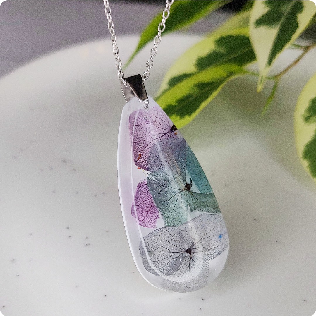 Żywica epoksydowa pozwala na utrwalenie kruchej i ulotnej cząstki natury. Jest krystaliczna i lekka. Stal szlachetna ma właściwości hipoalergiczne, nie odbarwia się i jest w dużym stopniu odporna na zarysowania. Przy odpowiedniej pielęgnacji biżuteria z tych materiałów jest gwarancją długiego użytkowania